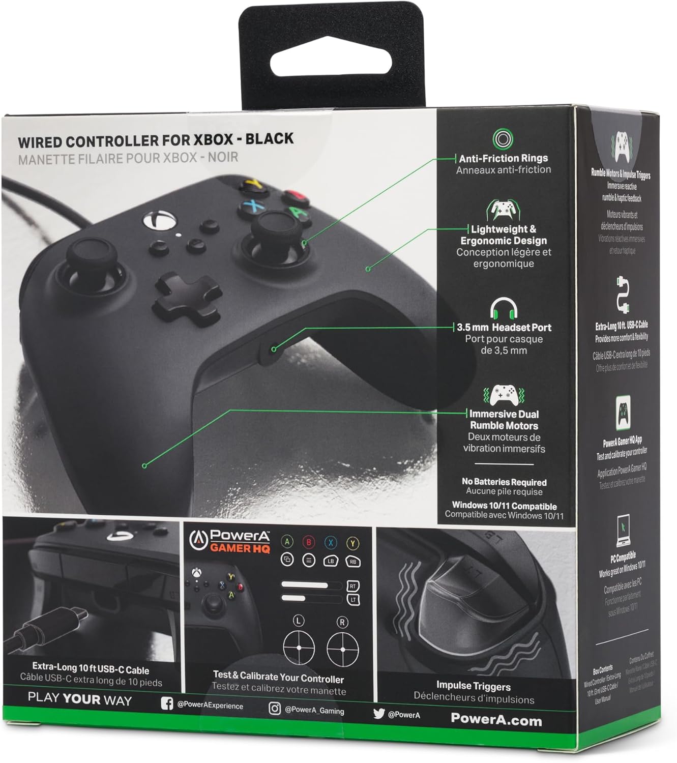 The PowerA Wired Controller for Xbox Series X|S is a reliable and responsive gamepad designed for seamless gameplay on your Xbox console. This sleek black controller is compatible with both Xbox Series X and Xbox Series S, as well as Xbox One, providing versatile gaming options. The ergonomic design ensures comfort during extended gaming sessions, while the responsive buttons and precise analog sticks deliver a true gaming experience. With a detachable 10ft USB cable for easy connectivity and customizable button mapping, this controller is the perfect choice for gamers looking for a high-quality, wired controller option. Upgrade your gaming experience with the PowerA Wired Controller for Xbox Series X|S.